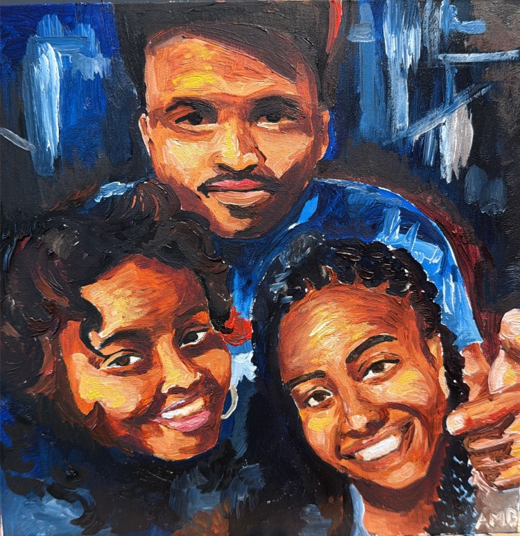 Cousins, Oil on Watercolor Board, 8 inches by 8 inches