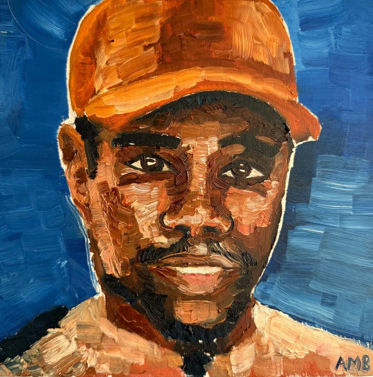 Man in the Hat, Oil on Watercolor Board, 8 inches by 8 inches